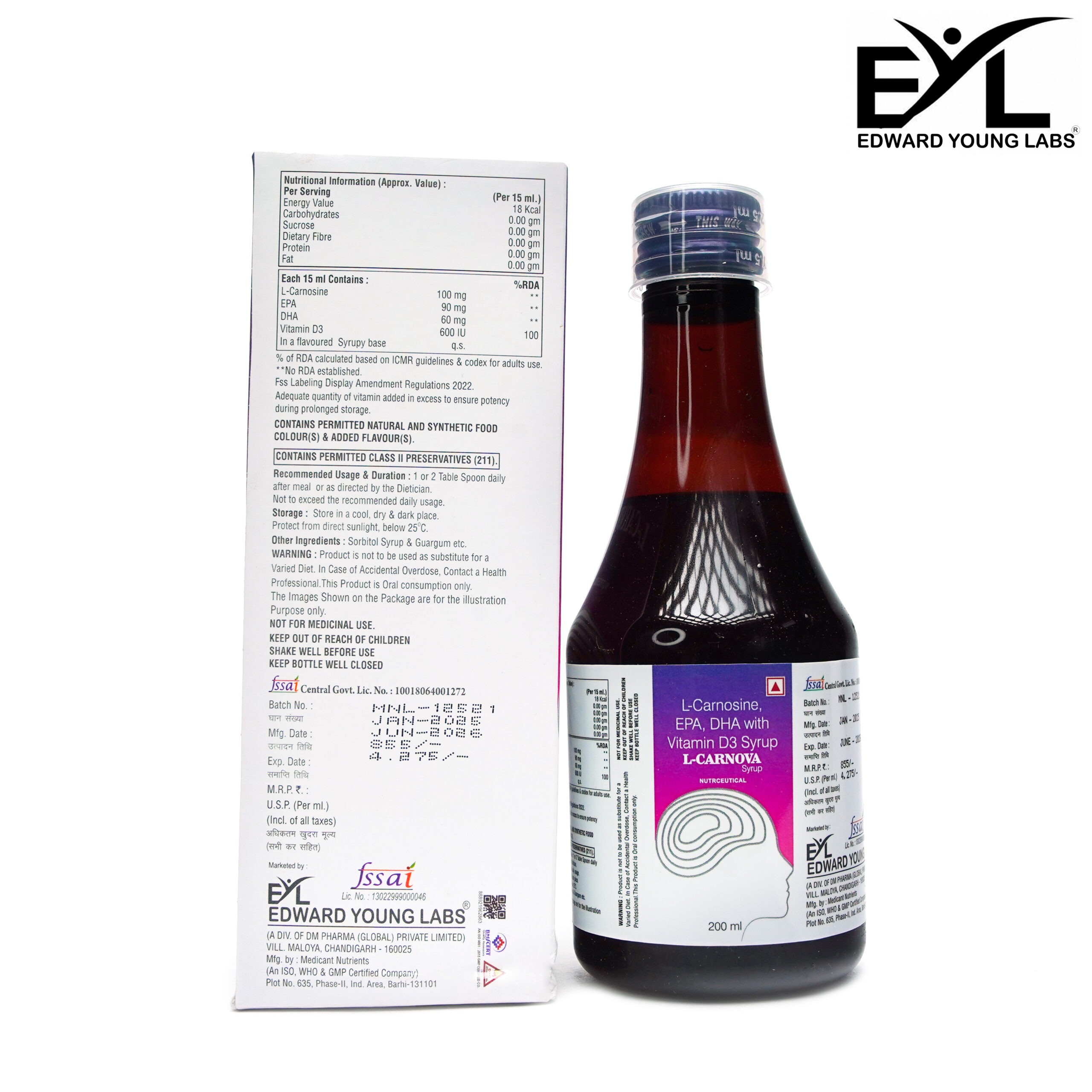 COMPOSITION: L-CARNOSINE, EPA, DHA WITH VITAMIN D3 SYRUP
